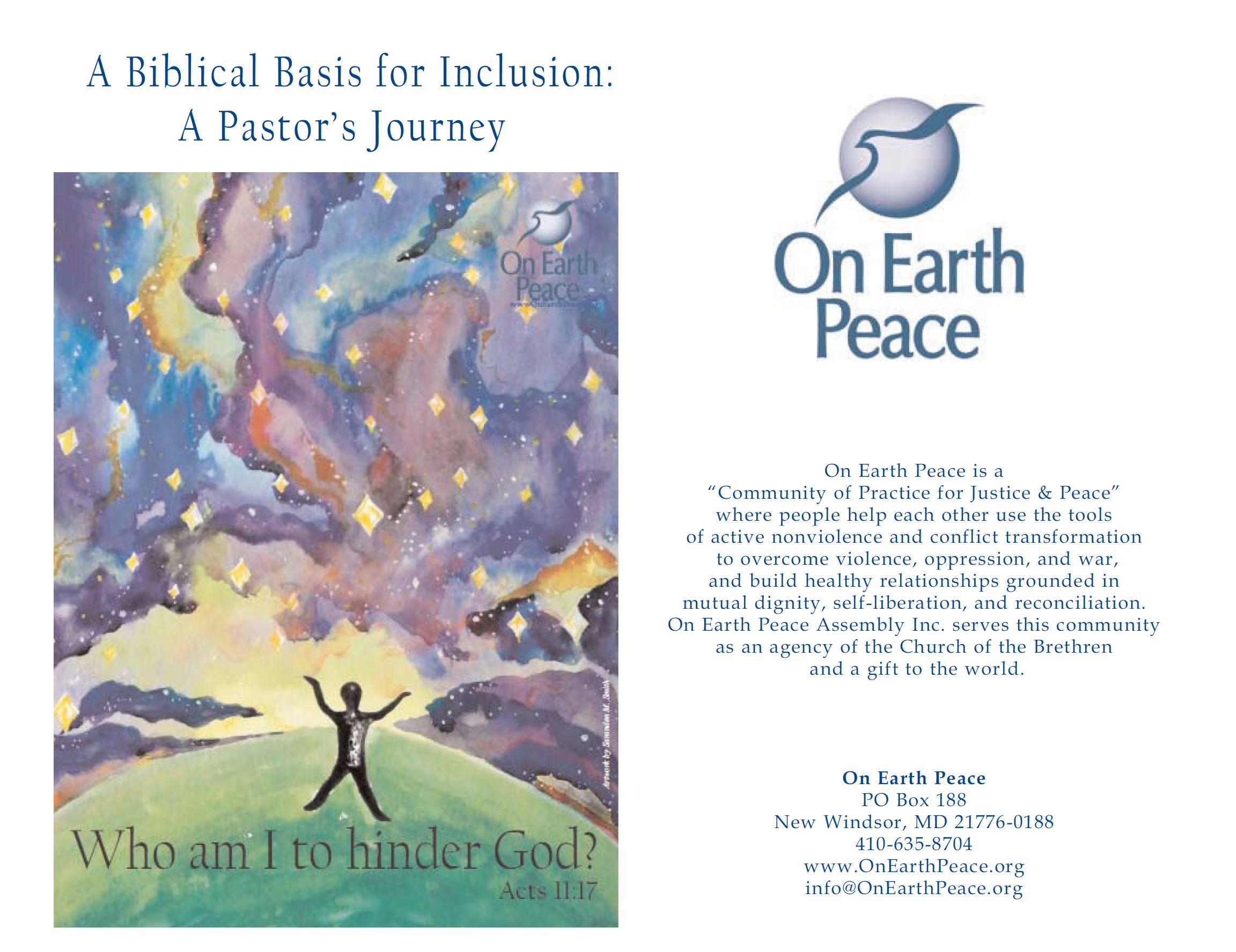 In 2016, OEP published "A Biblical Basis for Inclusion: A Pastor's Journey" by Irv Heishman.