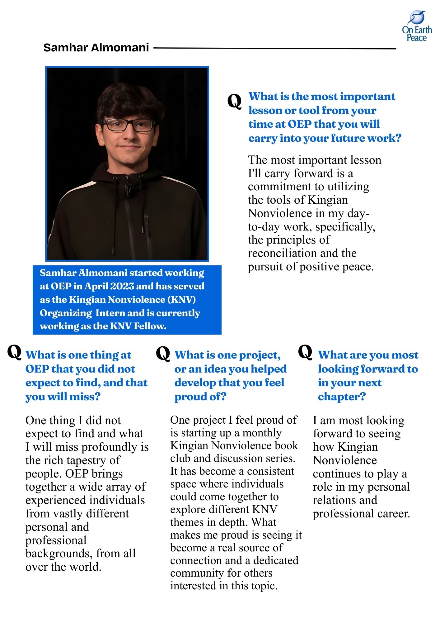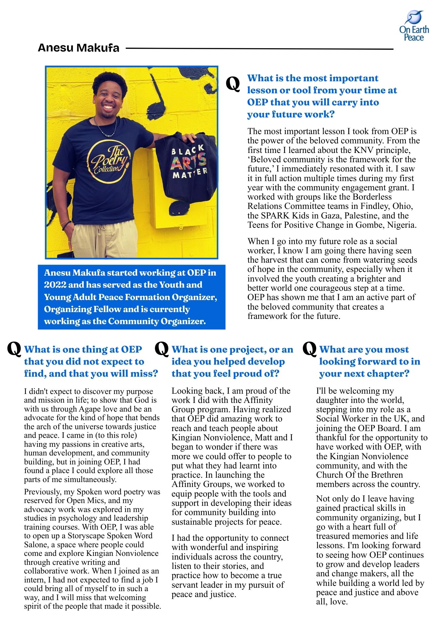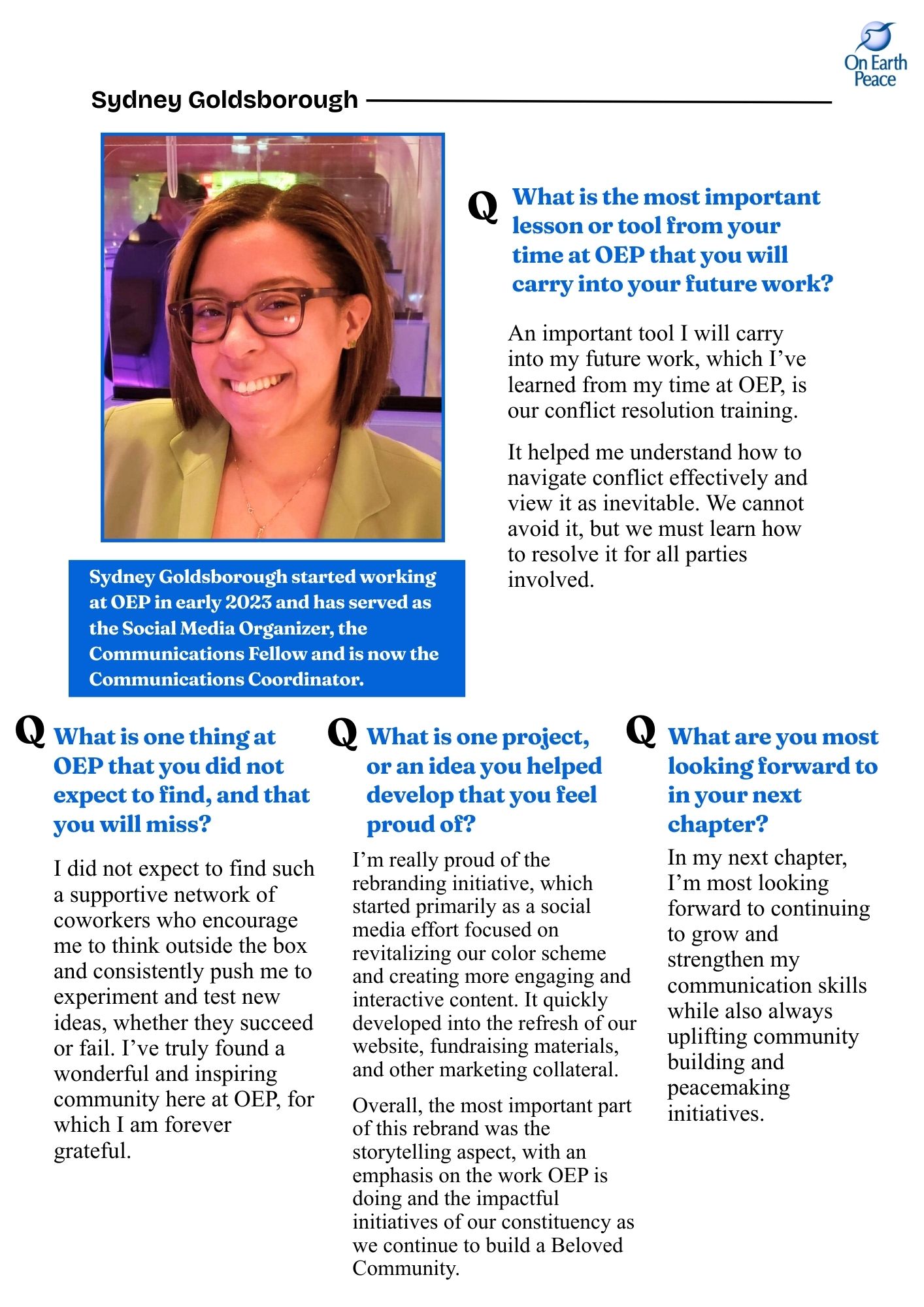 In this issue, we welcome Sydney Goldsborough as a new addition to On Earth Peace's permanent staff. We wish her the very best in her...