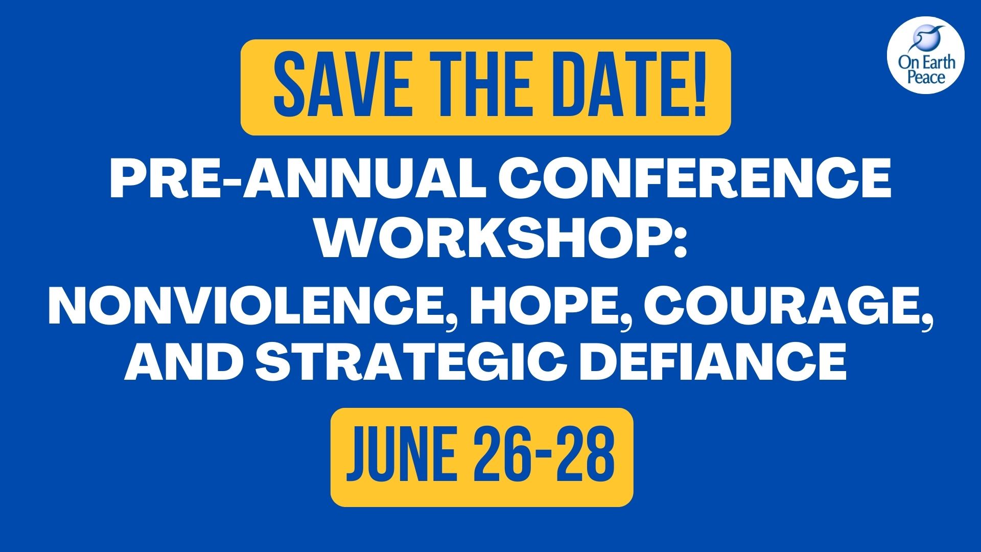 Save the Date for Pre-Annual Conference workshop: Nonviolence, Hope, Courage, and Strategic Defiance!
