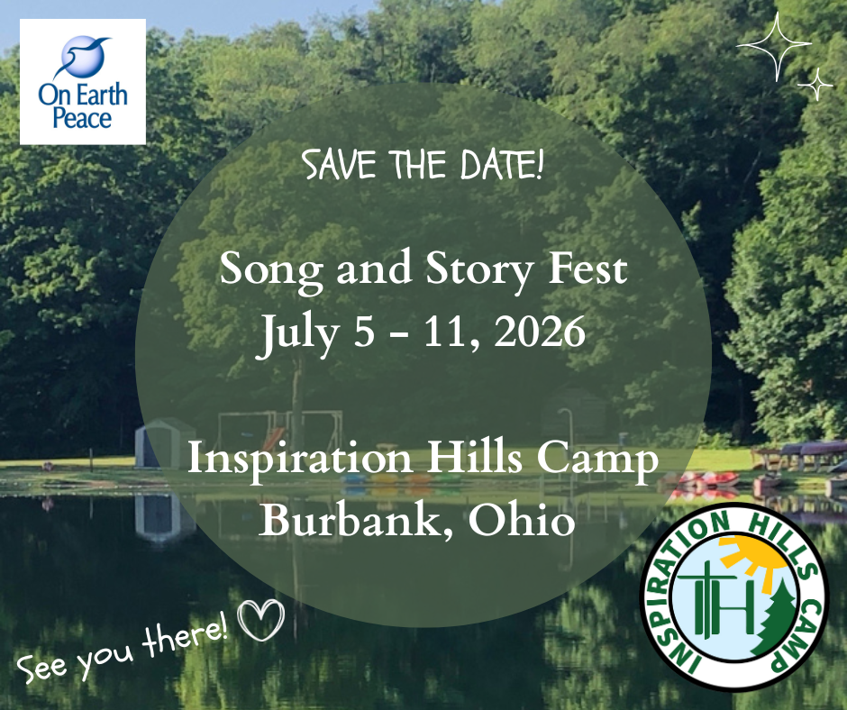 This is the thirtieth summer in a row for these Song and Story Fests and our fourth visit to Inspiration Hills, the Church of the Brethren camp for northern Ohio. We will be gathering the week after Annual Conference in Fort Wayne, IN. We will begin Sunday evening, July 5, with supper at 5:30 pm, an opening campfire, and some music and dancing. The Fest will close Saturday morning, July 11, after breakfast, worship, and hugs.